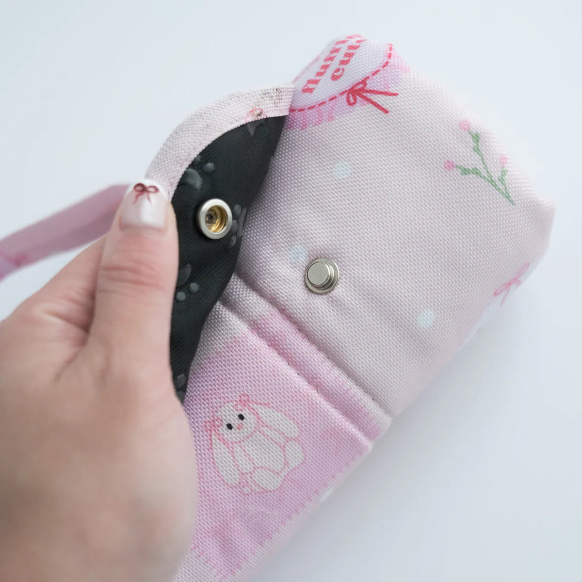 - roll up and snap button enclosure,