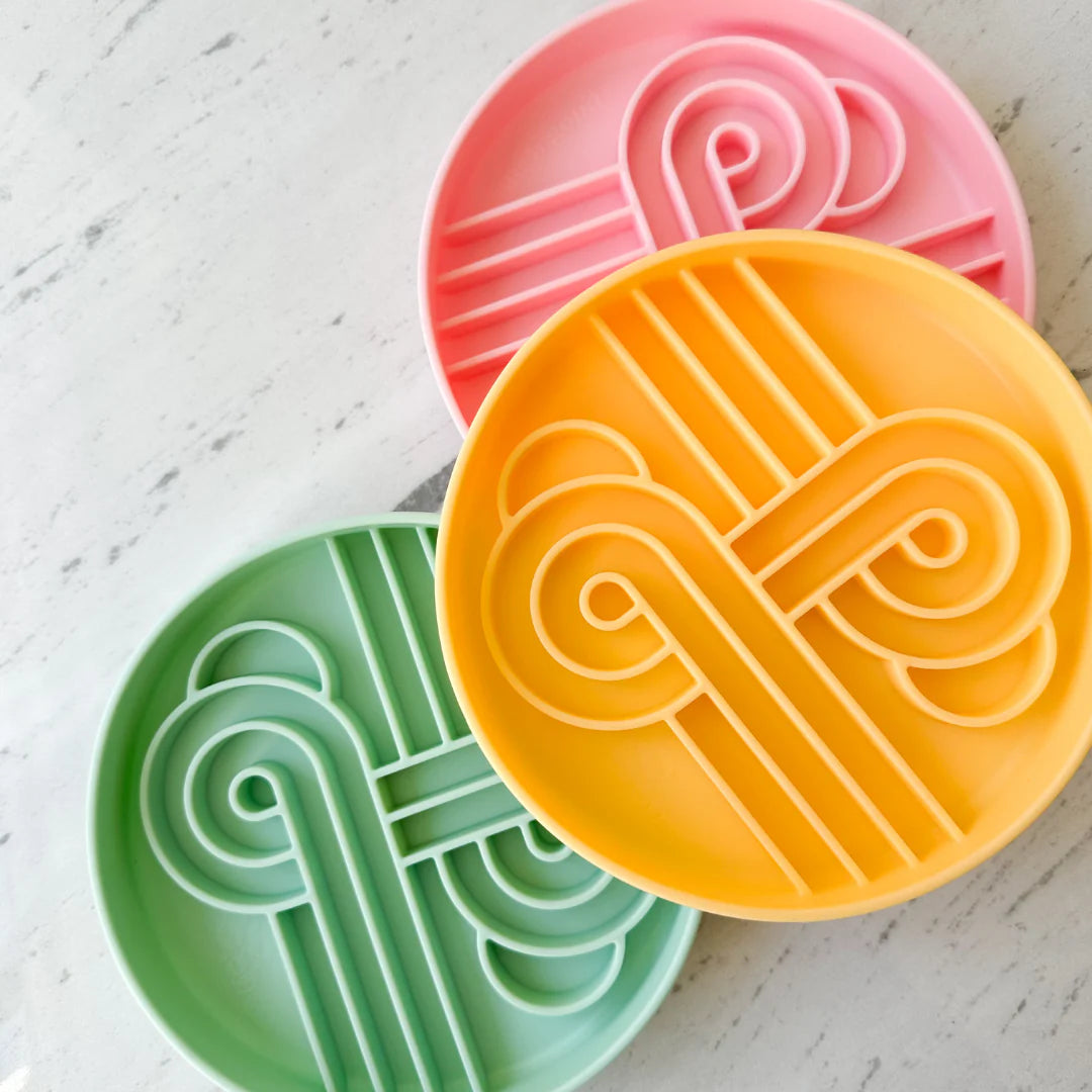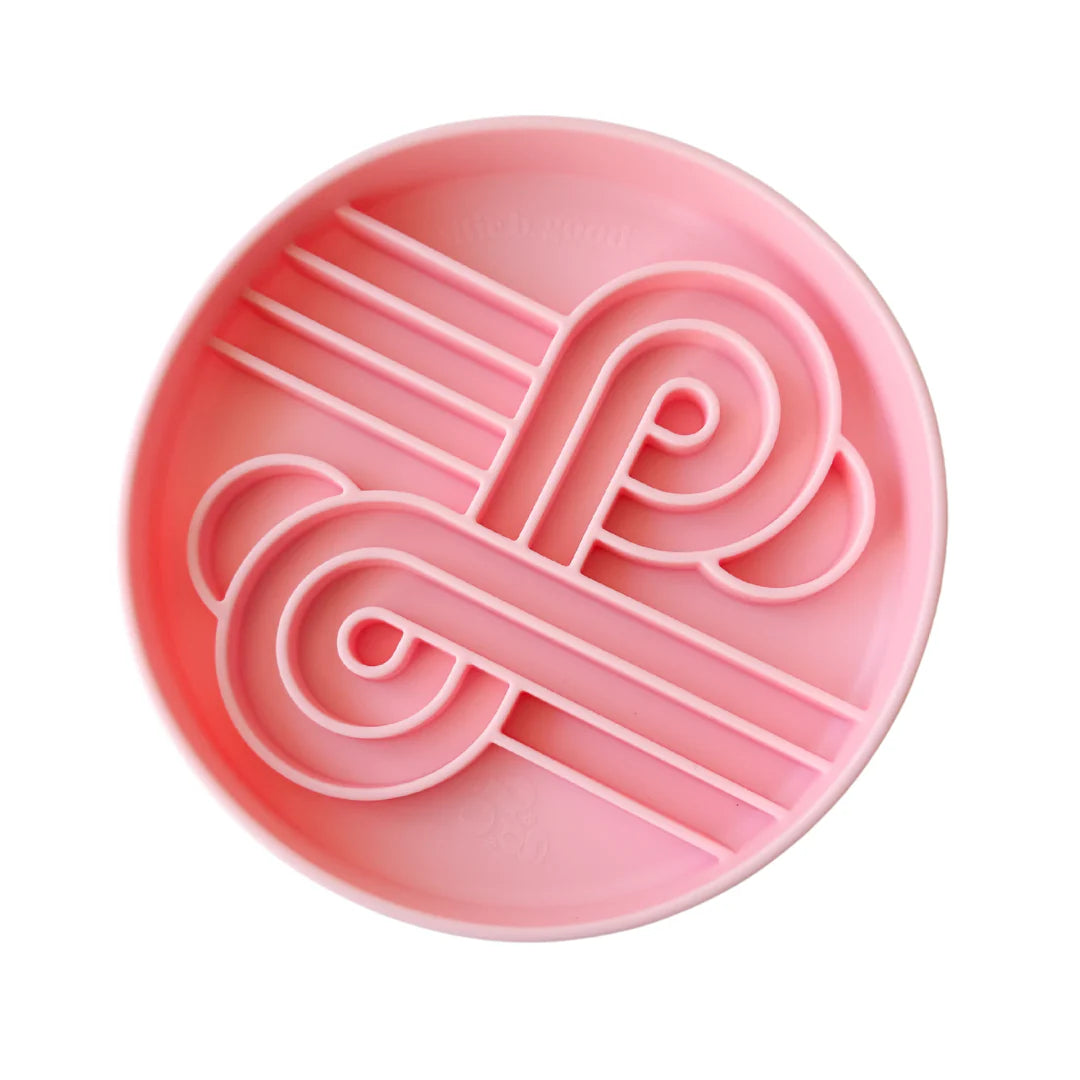 The Zoomies Slow Feeder was designed in-house, keeping all size breeds in mind. Named after it's fun race-track design!